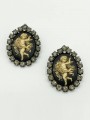 Orecchini donna in ottone, con riproduzione di cammeo con angelo e zirconi. Disponibile in diverse varianti.