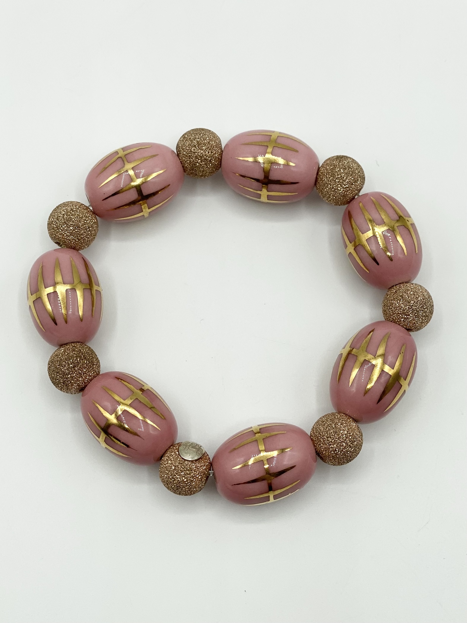 Orecchini donna fatti interamente a mano in argento 925 bagnato oro e ciambelline smaltate rosa.