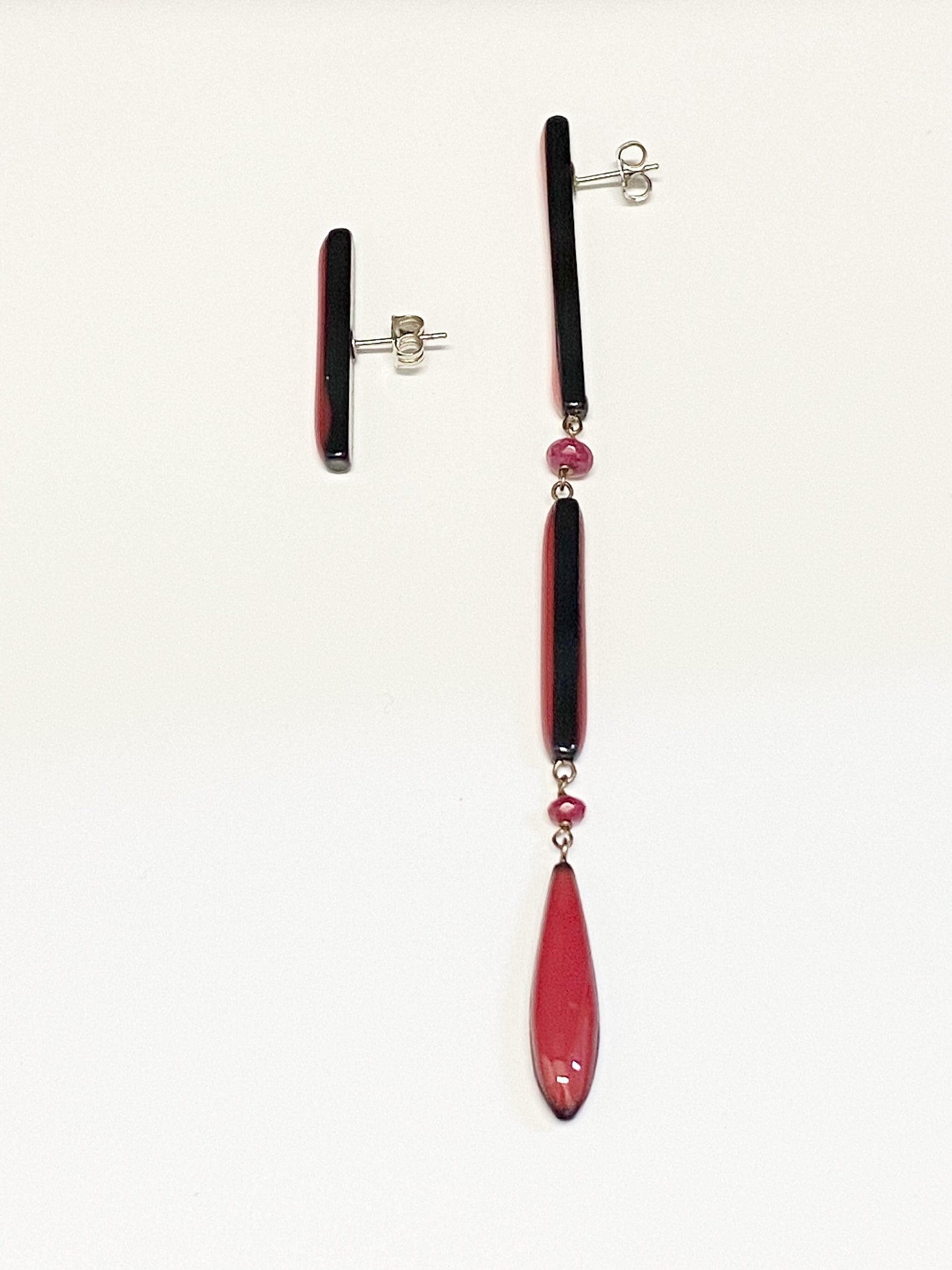 Orecchini donna Rosso Prezioso barretta lobo e doppia barretta pendente