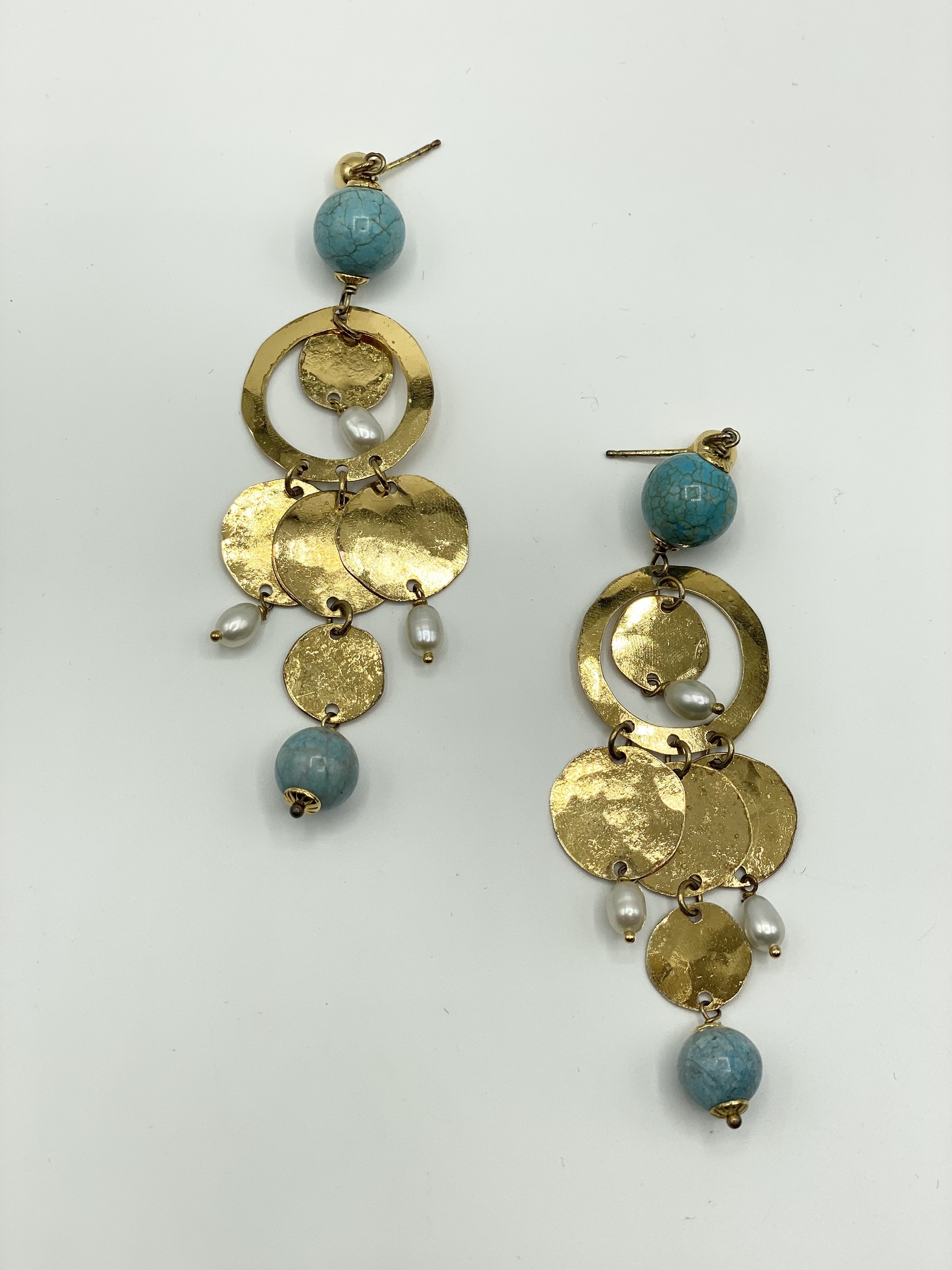 Orecchini donna Santo Spirito cerchi pendenti con pasta di turchese e perle