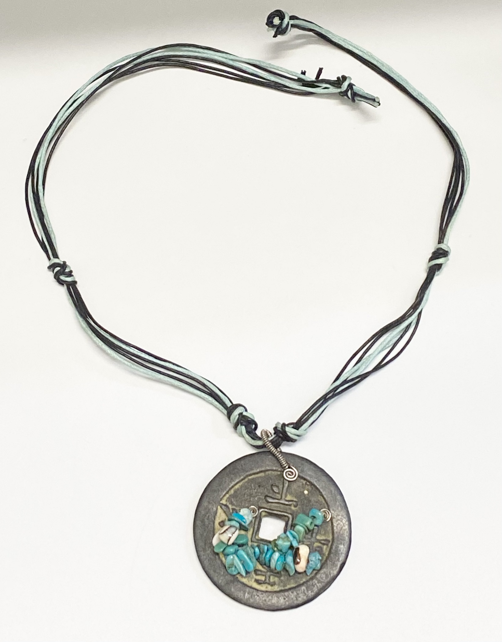 Collana donna Omnia con pendente rotondo e turchese