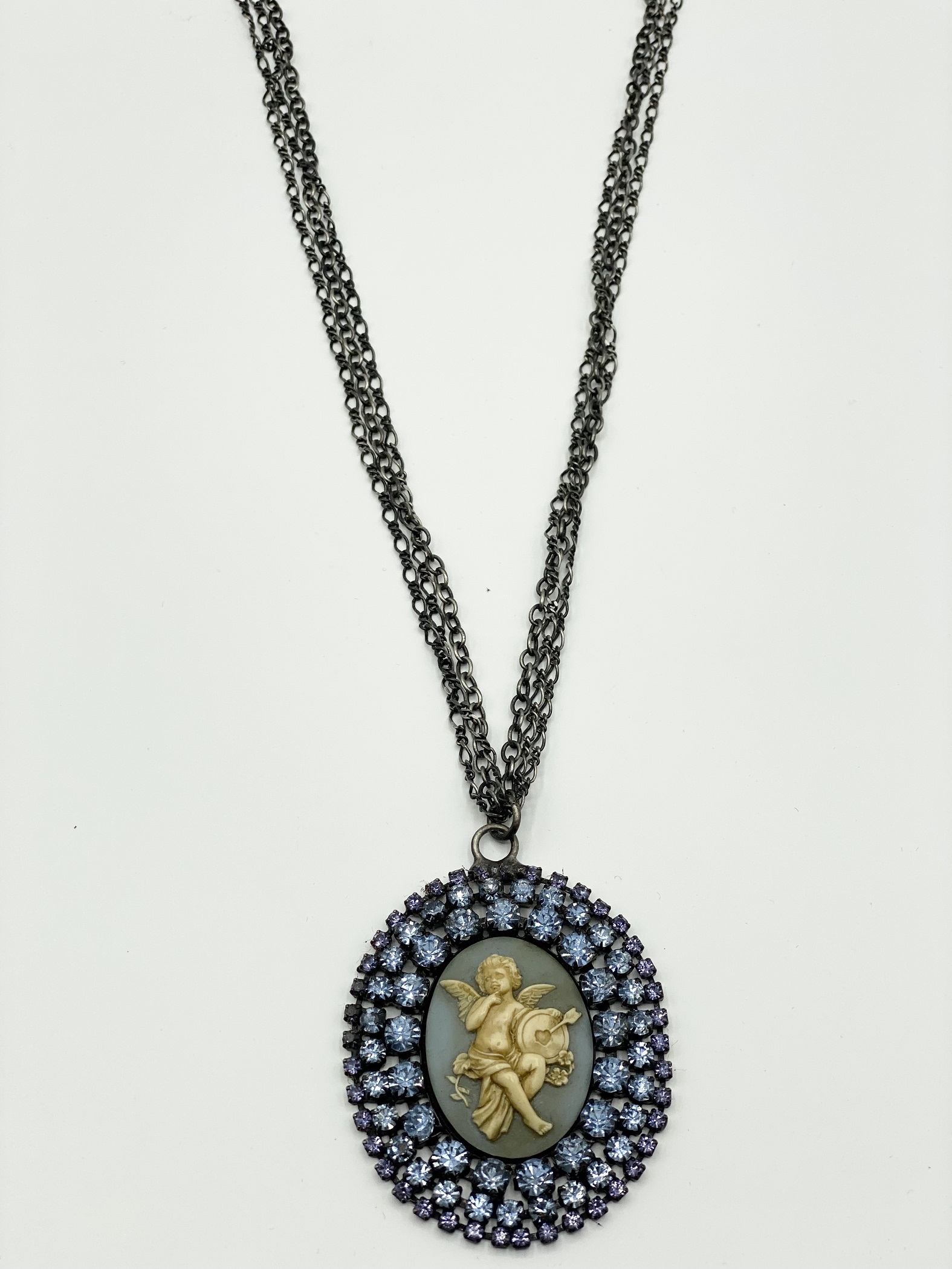 Collana lunga donna Fatta a mano cammeo e zirconi celesti