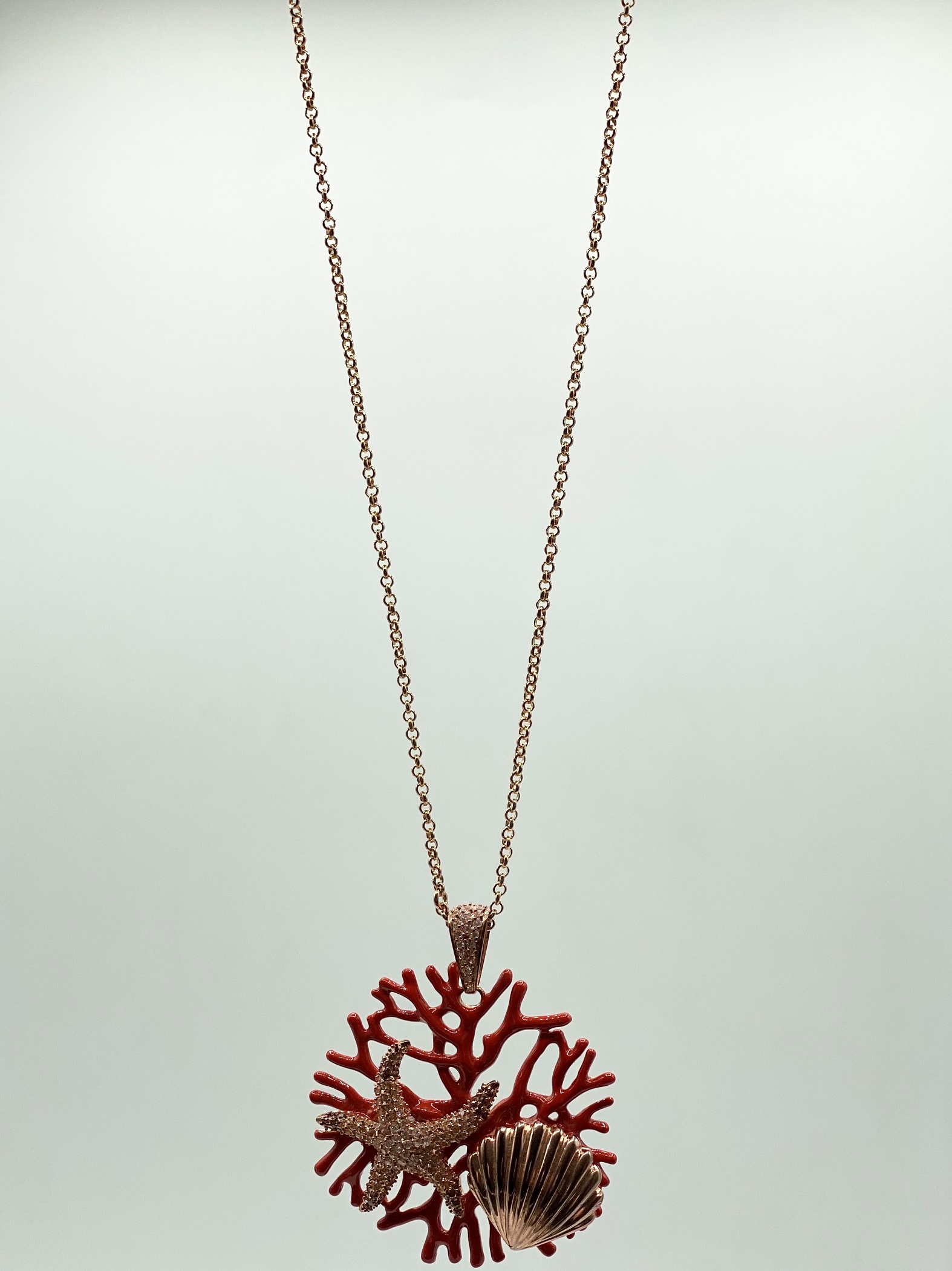 Collana lunga donna Fatta a mano con corallo e conchiglia
