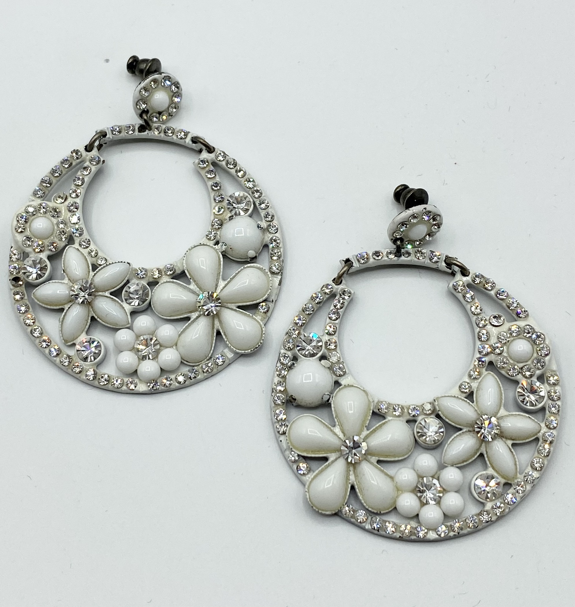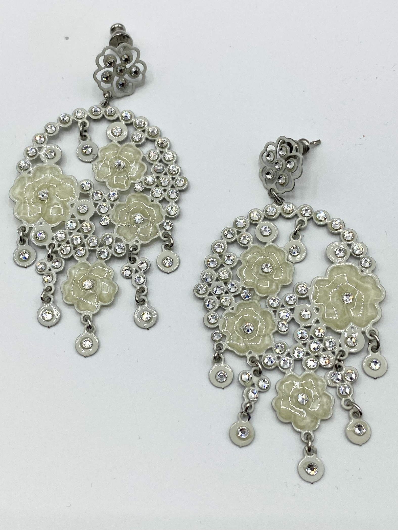 Orecchini donna La Griffe strass bianchi e fiori crema