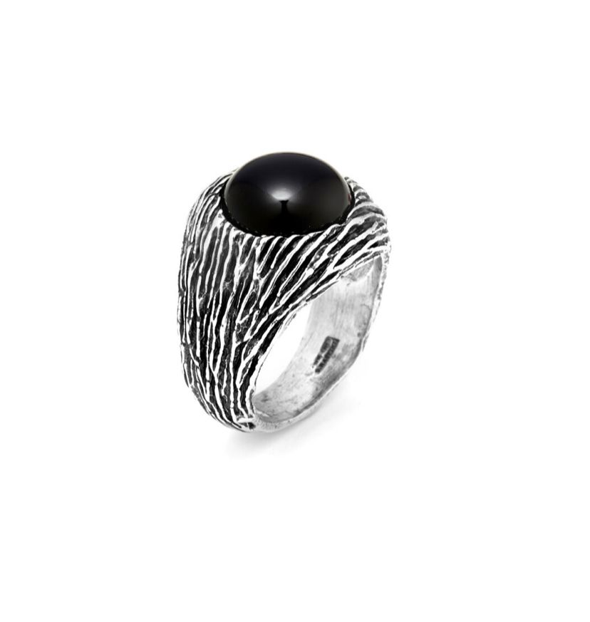 Anello Uomo Martellato Tondo Onice Grande Raspini